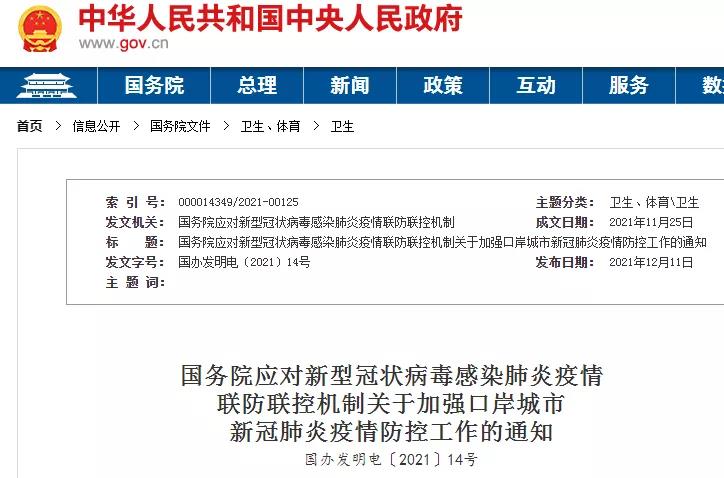 12月11日,國務(wù)院應(yīng)對(duì)新型冠狀病毒感染肺炎疫情聯(lián)防聯(lián)控機(jī)制印發(fā)《關(guān)于加強(qiáng)口岸城市新冠肺炎疫情防控工作的通知》,其中《通知》要求做好冷鏈?zhǔn)称穫鞑ワL(fēng)險(xiǎn)防控工作,各省(自治區(qū)、直轄市)要抓緊組織本轄區(qū)口岸城市開展一次冷鏈相關(guān)企業(yè)風(fēng)險(xiǎn)排查,全面評(píng)估和整改各環(huán)節(jié)風(fēng)險(xiǎn)漏洞,并于2021年12月15日前將排查整改情況報(bào)送國務(wù)院聯(lián)防聯(lián)控機(jī)制綜合組。并要求離開陸地邊境口岸城市需持48小時(shí)核酸證明。