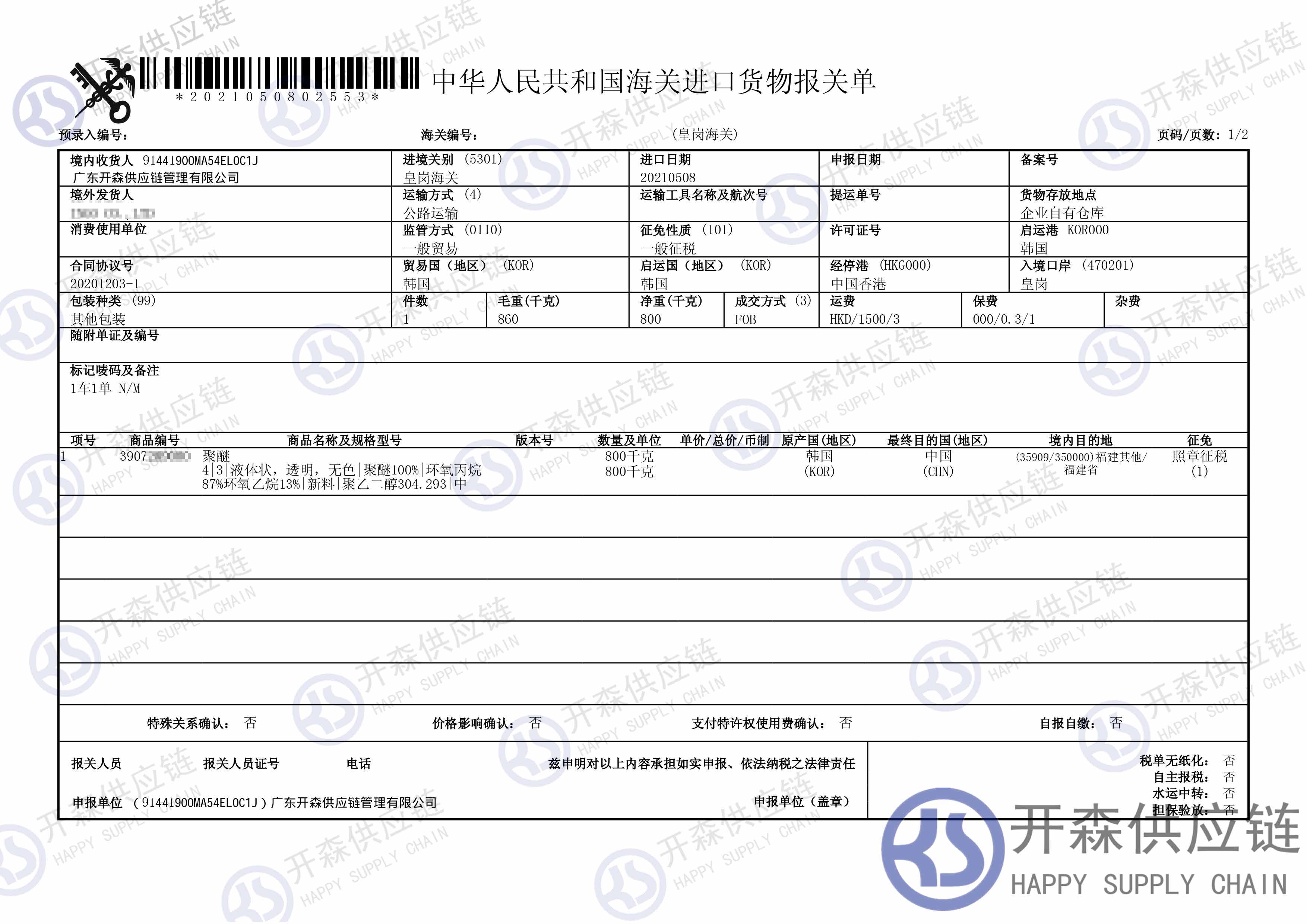 從韓國進(jìn)口一批聚醚等到深圳皇崗碼頭,我司提供門到門進(jìn)口一站式清關(guān)服務(wù),開森擁有十余年化工品進(jìn)口清關(guān)經(jīng)驗(yàn)及案例,為客戶提供量身制作的進(jìn)口方案,讓客戶進(jìn)口省時省心省成本。