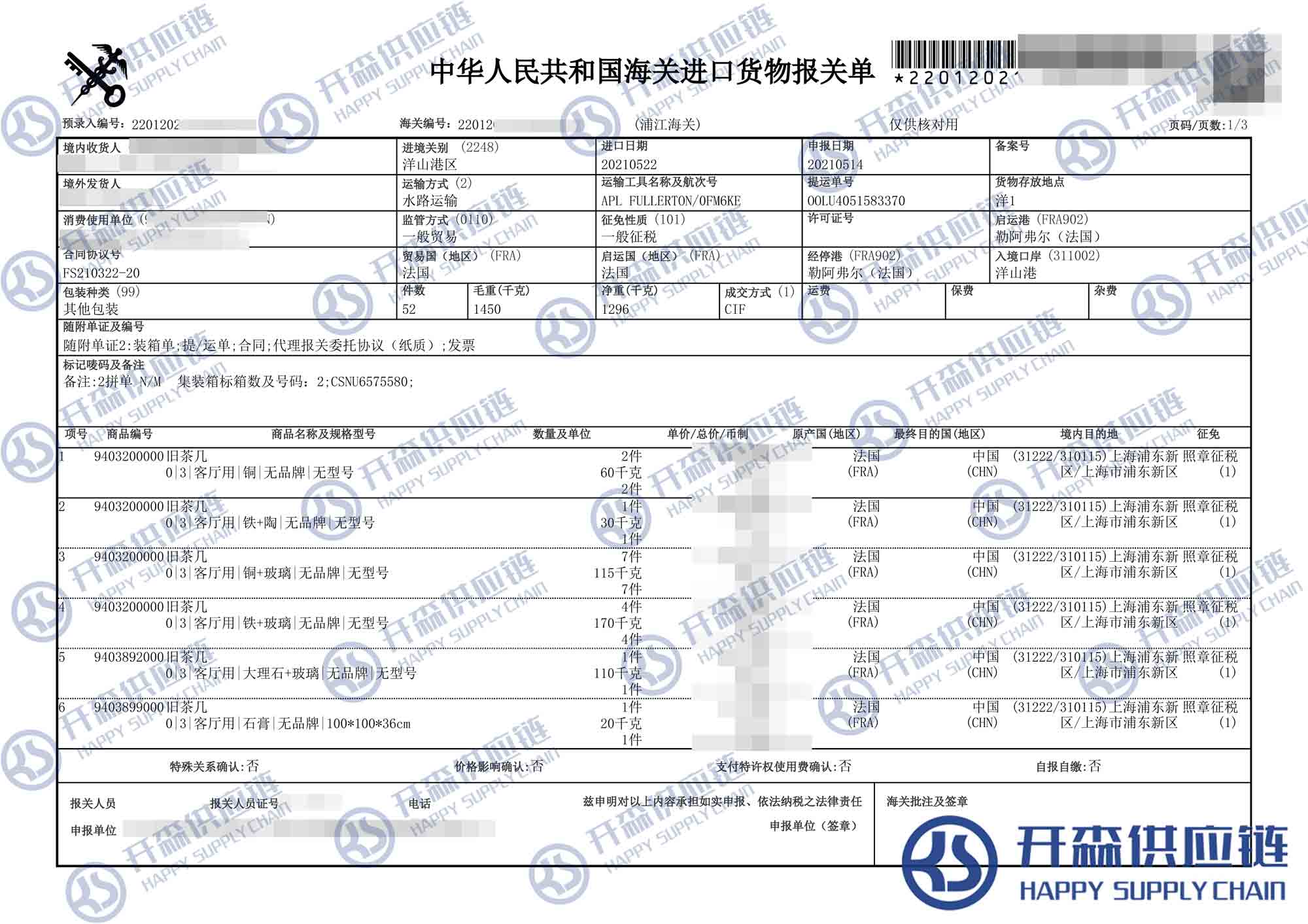 【導讀】您正在閱讀的是關于法國二手舊茶幾家具進口報關代理案例【經典案例】的內容,本文由開森二手家具進口報關代理小編整理編寫;