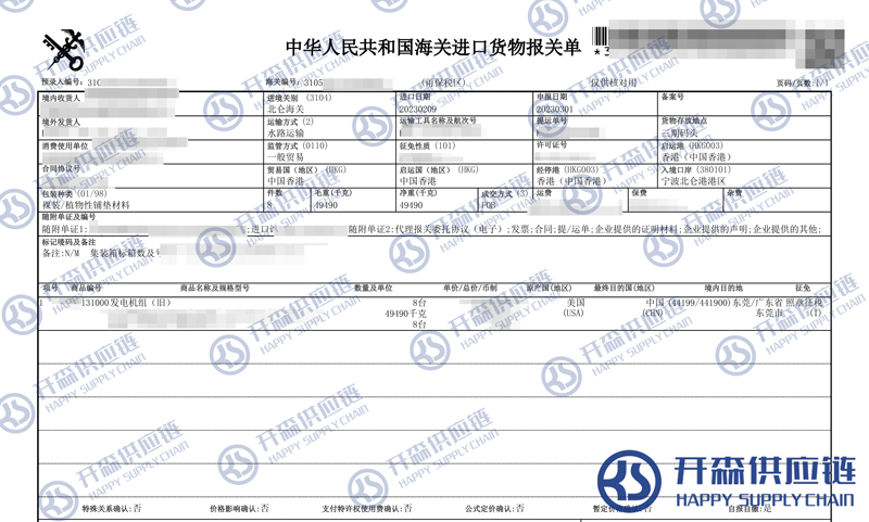 廣州黃埔港舊發(fā)電機(jī)組進(jìn)口報(bào)關(guān)清關(guān)代理服務(wù)【經(jīng)典案例】