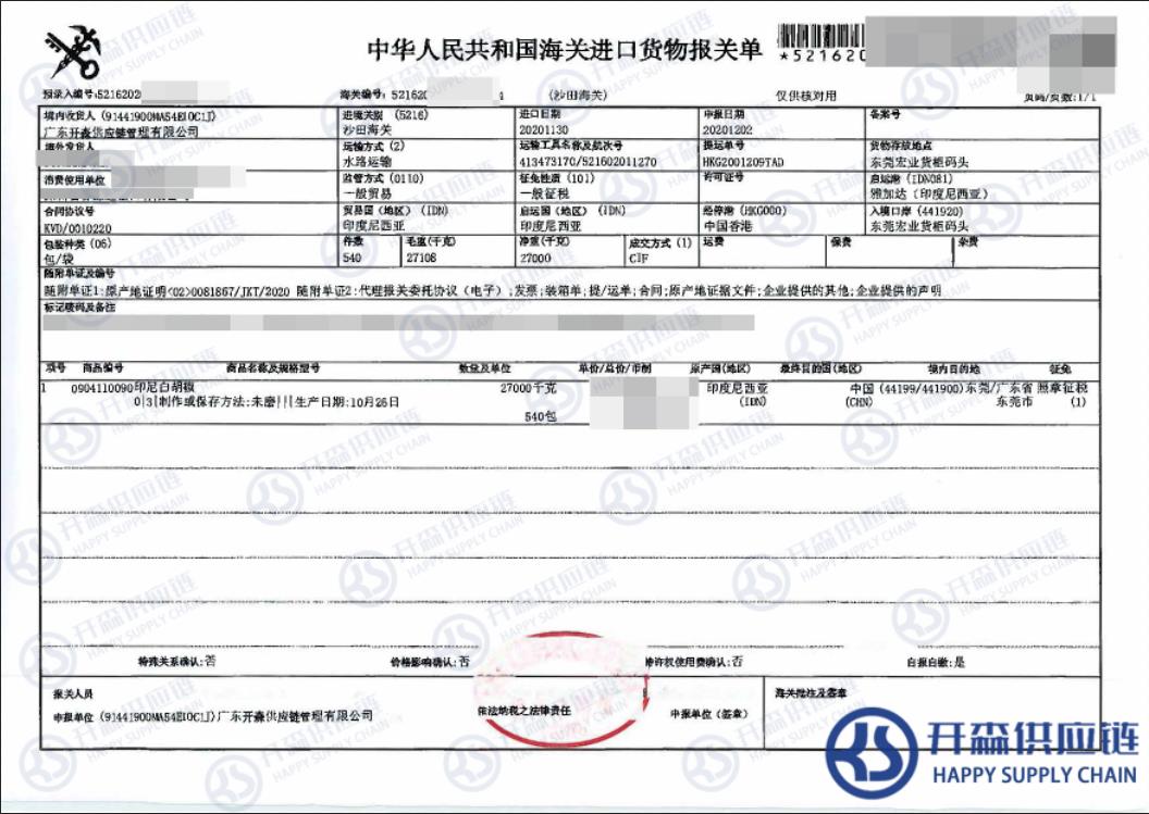 一、印度尼西亞白胡椒進(jìn)口報(bào)關(guān)手續(xù)資料