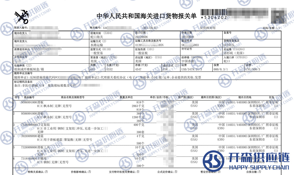 【導讀】您正在閱讀的是關于美國滑板進口清關報關代理服務【經典案例】的內容,本文由開森普貨進口報關案例代理小編整理編寫;