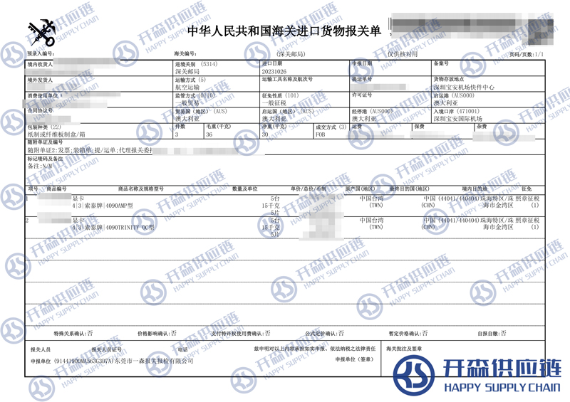 一、澳大利亞高端顯卡進(jìn)口報(bào)關(guān)代理案例詳情