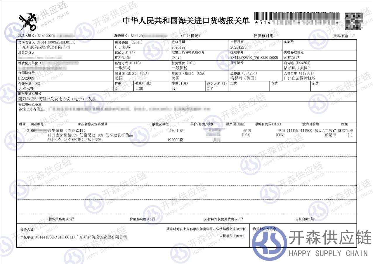【導讀】您正在閱讀的是關于【進口案例】益生菌粉(固體飲料)進口報關代理服務的內容,本文由開森固體飲料進口報關代理小編整理編寫;